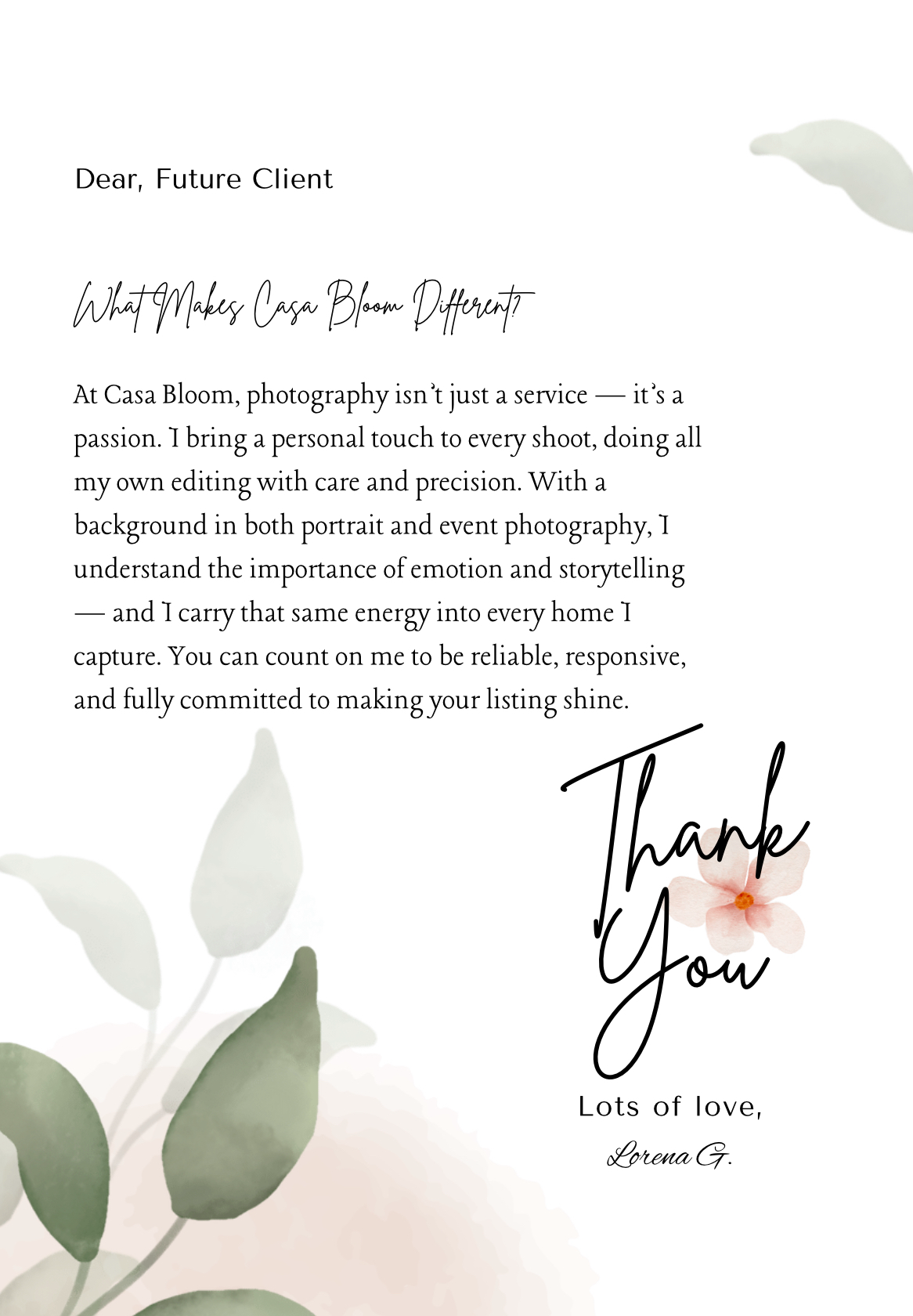 Whether you’re a seasoned agent or just getting started, I’d love to help bring your listings to life. Reach out through my Contact page, Click the scrolling phone above to text me, or DM me on Instagram @casa_bloomphotography.